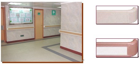 | 廠家提供五年原廠質(zhì)量保證! } 塑料墻面保護(hù)材料的底部更附有「不織布結(jié)構(gòu)」纖維承托層(non-woven fiber back),一方面增強(qiáng)產(chǎn)品的尺寸穩(wěn)定性(Dimensional Stability),有效地減低因溫差而出現(xiàn)的冷縮熱漲現(xiàn)象;另一方面又可使材料于將來(lái)更換時(shí)更容易整片撕下,簡(jiǎn)化日后改造工程時(shí)所需的人力物力。 ~ 塑料墻面保護(hù)材料更能配合現(xiàn)代化醫(yī)院及老人中心均有安裝的各式「扶手欄」(Handrails),從而提供一套完善的墻壁保護(hù)和安全系統(tǒng)。