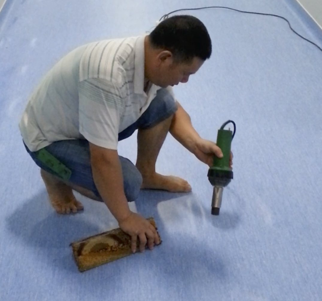 1. 因為存放不當(dāng),造成膠地板變形,安裝時需要多費功夫修復(fù)鼓起膠地板 ![]() 存放不當(dāng)造成PVC地板變形 2. 需要先用焊槍烤軟地板 ![]() 用焊槍烤軟PVC地板